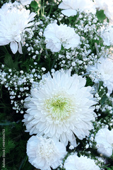 Flower bouquet of white carnations and chrysanthemums. beautiful flower arrangement. full frame floral background close up.