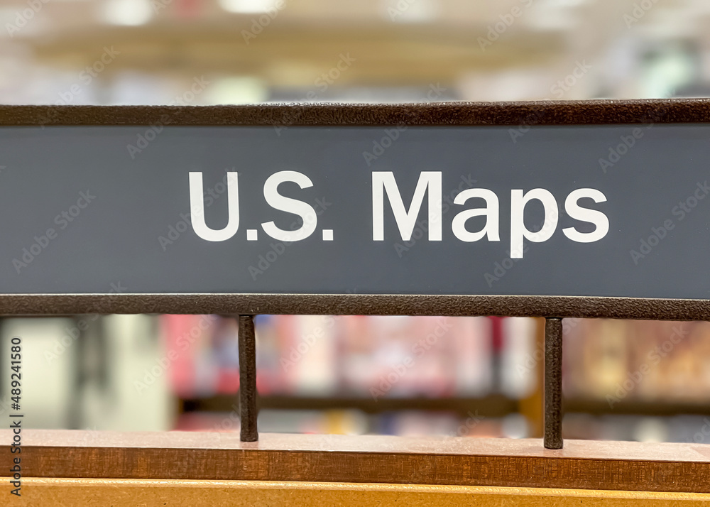 Close up view of US Maps sign board