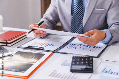 Hands of business people analyzing information in reports and making conclusion on company performance