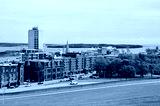 Halifax, Nova Scotia, Canada - October 10, 2019: Cityscapes of the downtown and harbor, a beautiful view taken from the Halifax Citadel on hill