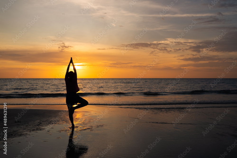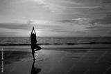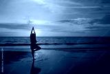 Silhouette of Man Meditate on Beach at Sunset