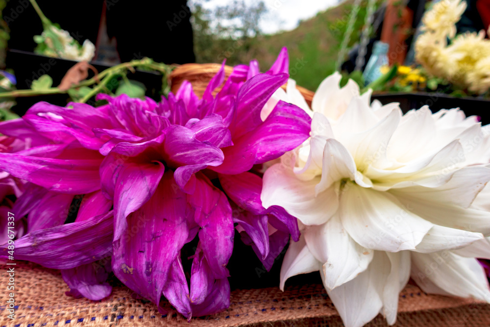 Large dahlia bud red and white.