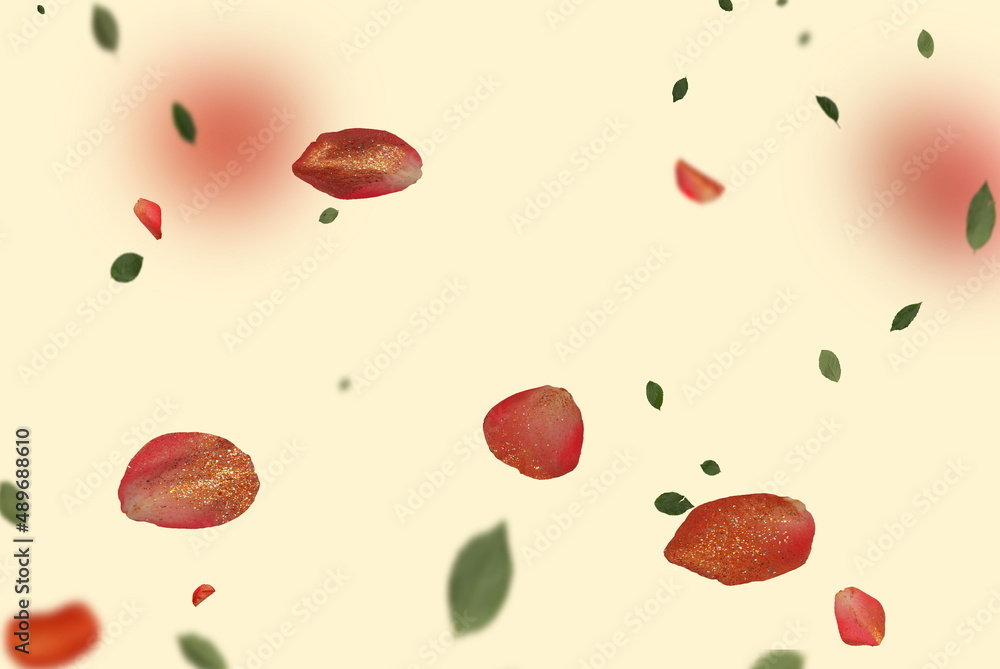 pink green flowers and petal leves colorful festive greetings summer spring paster on pink blue yellow floral background template copy space