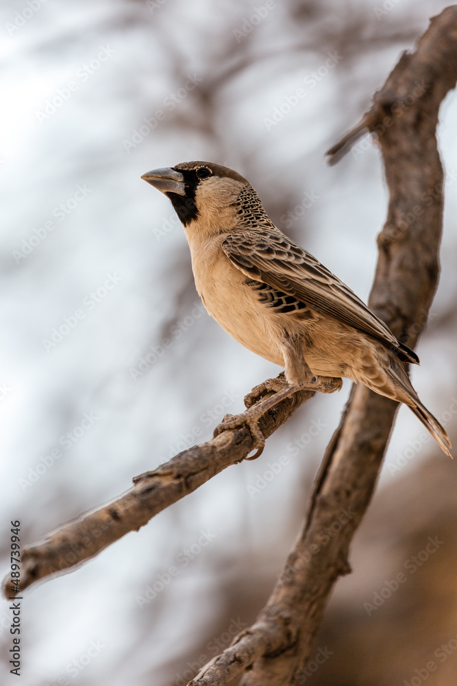 Weaver bird sitting on a branch. Etosha. Namibia.