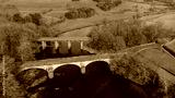 An aerial view of the bridges at Crook O Lune near Lancaster in Lancashire, UK
