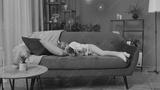 Tired little school kid girl using mobile phone technology device lying on sofa alone at home. Child toddler hold smartphone watching online cartoons, chatting with friends. Children tech addiction