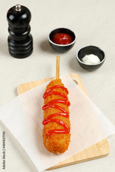 Mozarella Corndog with Tomato Sauce, Popular Korean and American Street Food