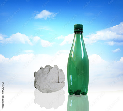 Recyclage, bouteille en plastique et papier