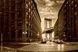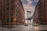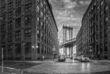 Mesmerizing view of the Empire State Building through Manhattan Bridge in the evening - wallpaper