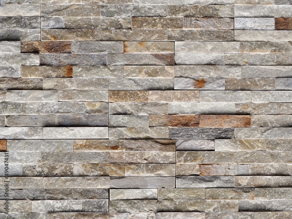 Stone cladding wall made of quartzite tiles, usually used for exterior but sometimes also for interiors . Close up.