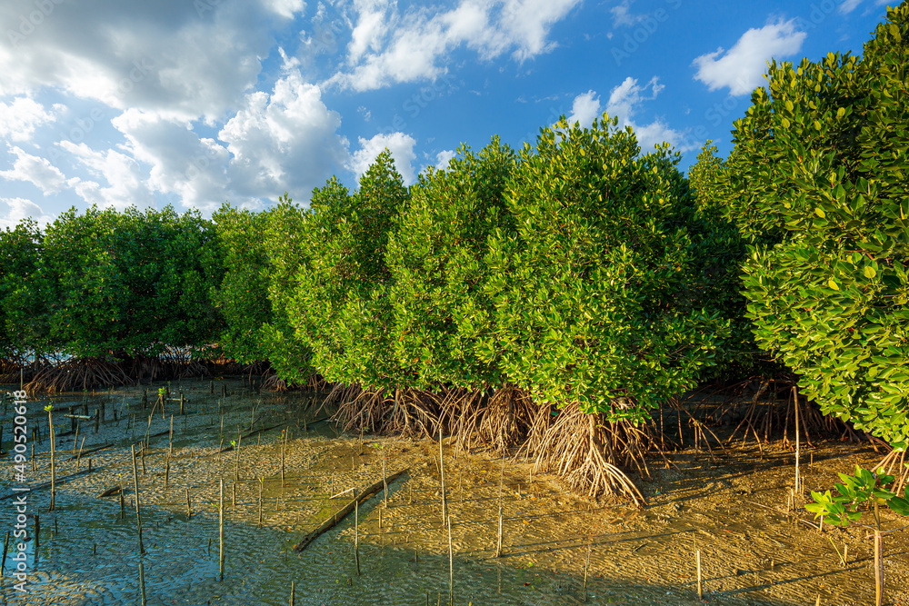 mangrove forest,River along the mangrove trees,Mangrove forests play a vital role in tropical areas worldwide. They act as nurseries for many marine species