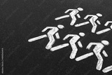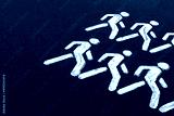 pedestrian crossing sign on the road in the form of people walking in an urban environment. walkway area on the black asphalt for park visitors in the city background, banner