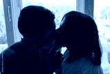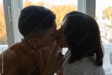 Sexy beautiful young couple kissing near the window in bedroom. Close-up.