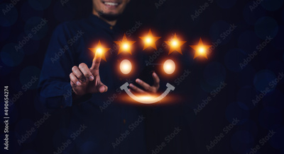 Men take a very good five-star satisfaction survey on visual screen digital technology