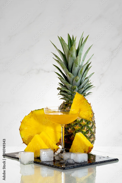pineapple lies on a bright background. Fresh juicy tropical yellow fruit