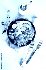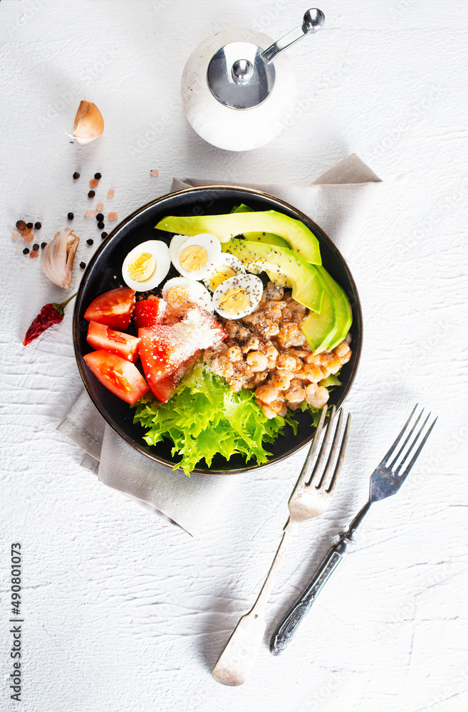 Healthy food. Dietary salad with spinach, quail eggs and nuts. Keto diet. Keto Salad