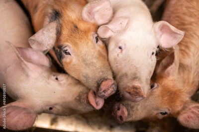Group of pig that looks healthy in local pig farm at livestock. The concept of standardized and clean farming without local diseases or conditions that affect pig growth or fecundity