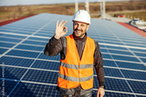 A worker gesturing with hand with okay sign for sustainable lifestyle.