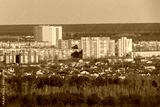 View of the left bank of Kyiv, the area of Rusanovsky gardens