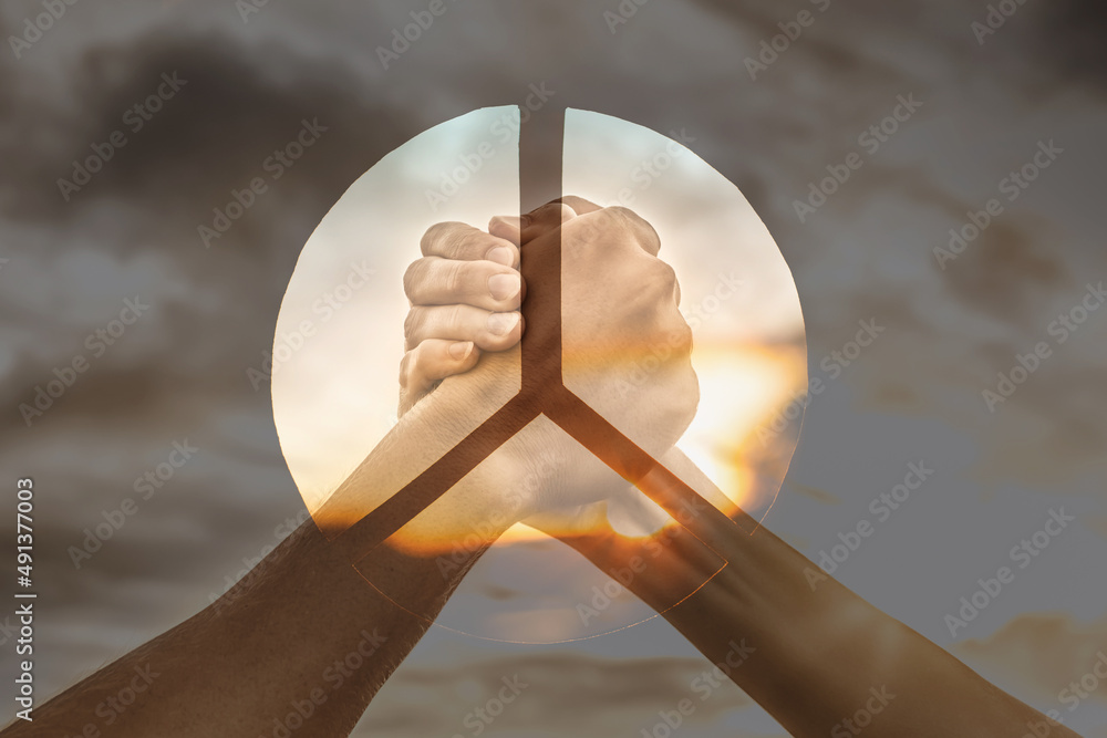 people holding hands working together symbolizing peace and unity, antiwar concept