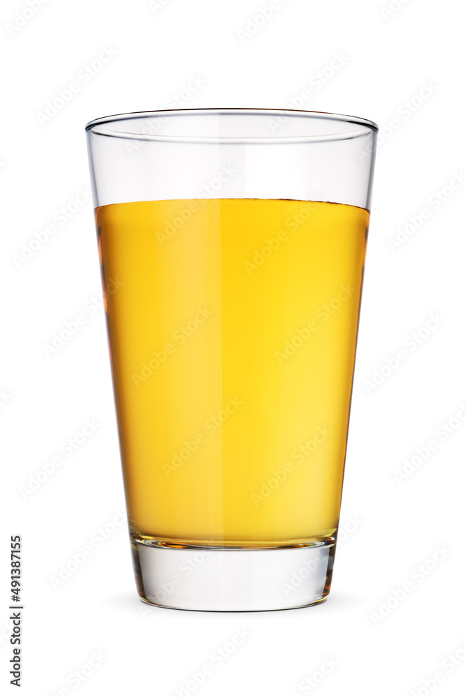 Glass of apple juice isolated on white.