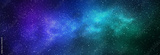 Night starry sky and bright blue green galaxy, horizontal background banner