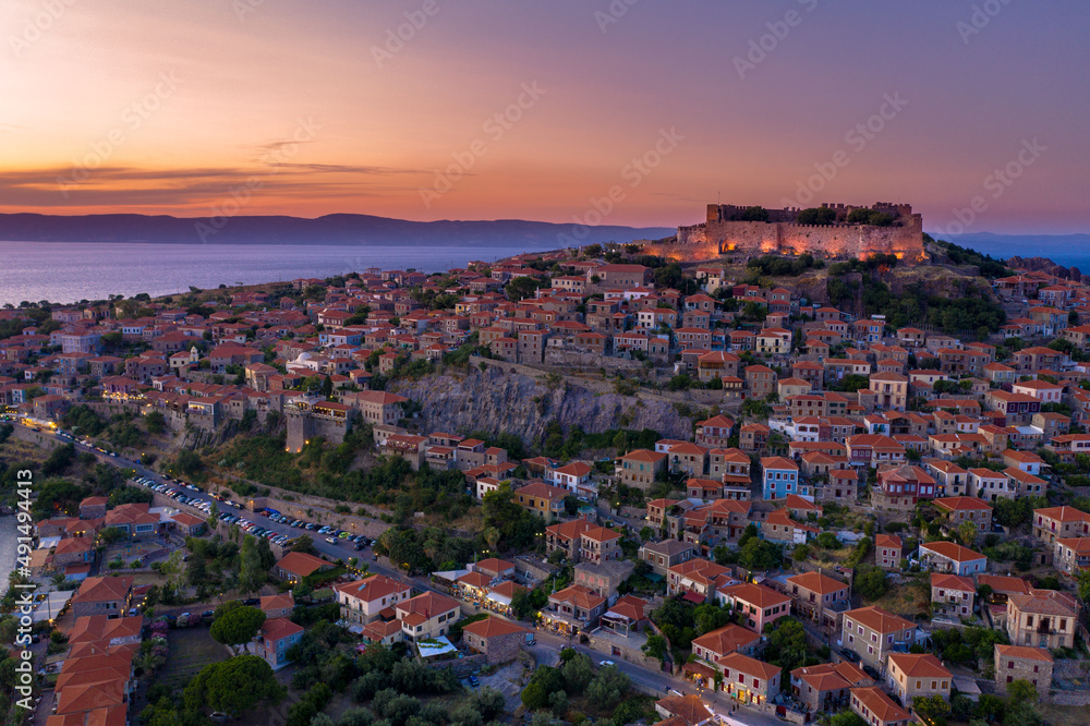 Famous old town of Molyvos, Lesvos island, Greece.