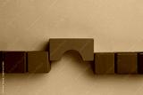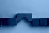 Bridge made of colorful blocks on violet background, flat lay. Connection, relationships and deal concept
