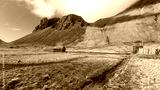 Traditional icelandic home ruines near Vestrahorn in eastern Iceland