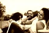 Happy indian family having fun painting with children at city park - Focus on mother face