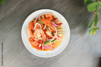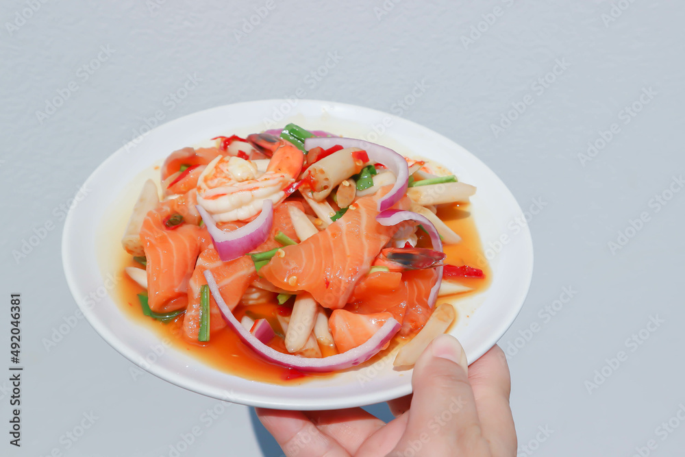 salmon and shrimp salad , spicy salad or spicy seafood salad