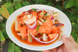 salmon and shrimp salad , spicy salad or spicy seafood salad