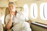 Travelling in style. Portrait of a handsome senior man sitting in an airplane with a smile.