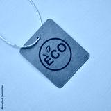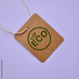 brown tag with the inscription eco on a light background. Symbol of environmentally friendly products