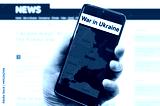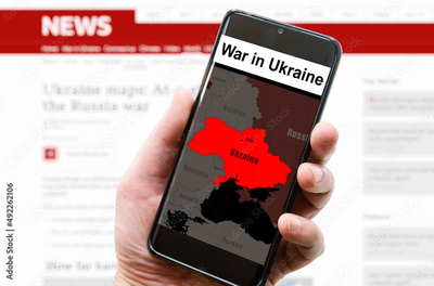 War in Ukraine on mobile phone screen, media news concept