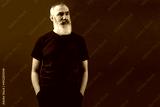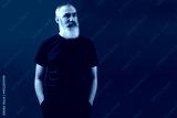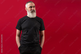 Adult handsome senior male model with a gray beard wearing a black t-shirt