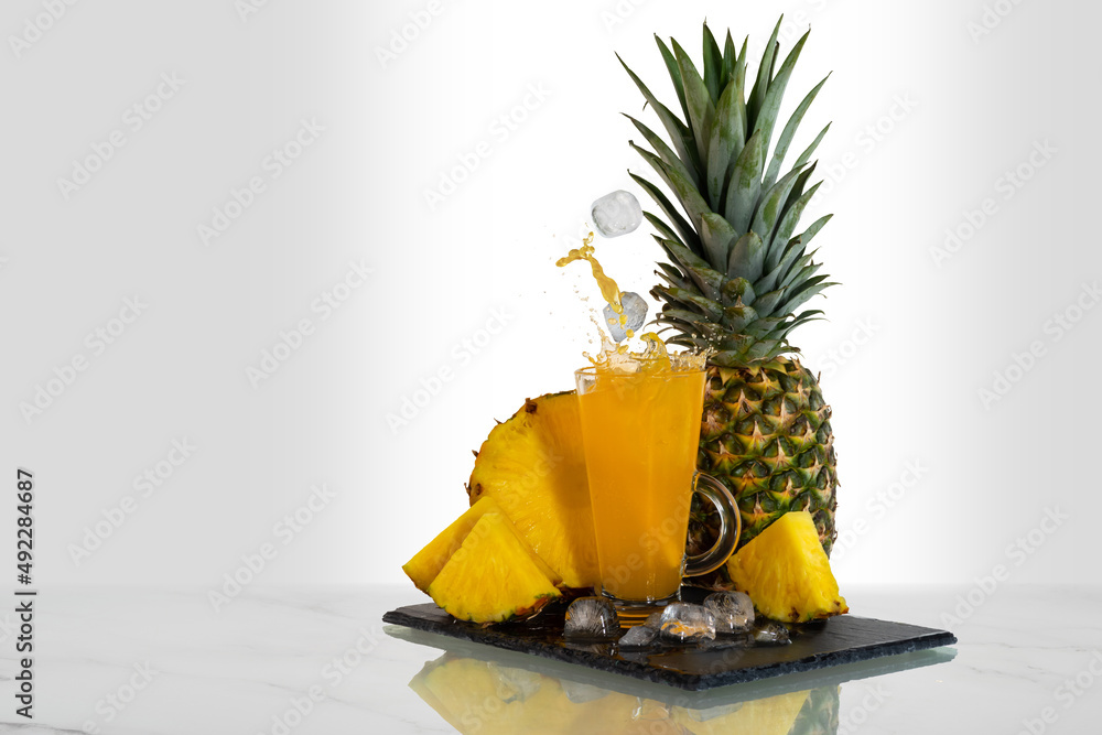 pineapple lies on a bright background. Fresh juicy tropical yellow fruit