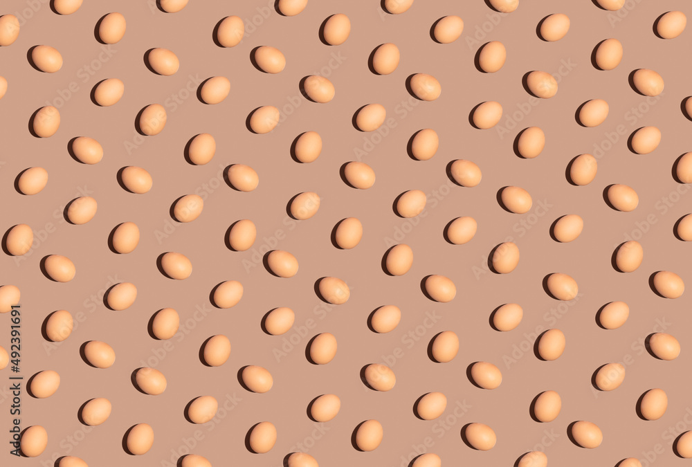 Easter egg vertical pattern composition. Spring and holiday season idea, creative celebration concept. Brown retro background.