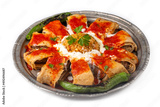 Turkish Beyti Kebap or kebab with grilled vegetables