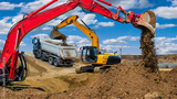 earth mover and excavator at work in construction site