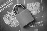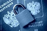 Russia Sanctions and Ukraine war concept. Russian Federation passports with padlock.