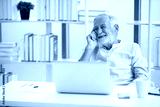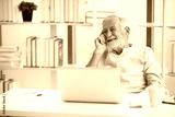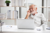 senior businessman with laptop computer and thinking something