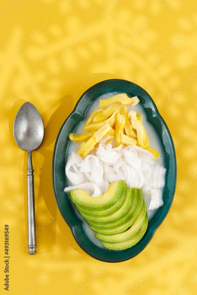 Es Teler, Traditional Indonesian Ice Dessert of Tropical Fruit Cocktail in Sweet Coconut Water and Condensed Milk
