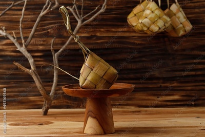 Ketupat is Rice Dumpling Made from Boiled Rice with Young Coconut or Palm Leaves Casing. Consumed during Eid Mubarak.