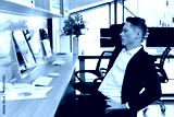 businessman working with desktop computer at office table.