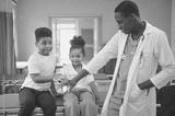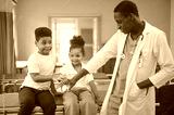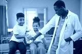 American doctor and kids little in children's hospital