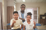 American doctor and kids little in children's hospital