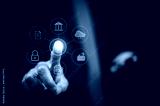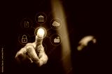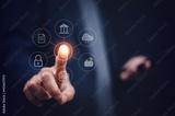Businessman scans fingerprint to unlock security system Internet storage and financial systems Banking and personal information