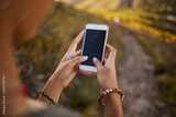 Every nature lover should download this app. Cropped shot of a woman using her cellphone while out on a hike.