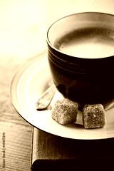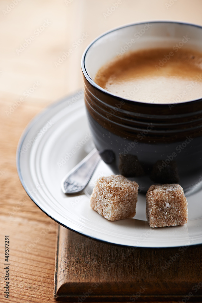 Cup of espresso with brown sugar cubes
